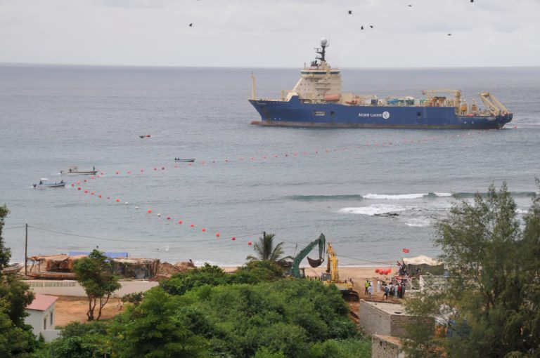 2 direct FO shore-ends in Dakar (Senegal). Protection of cable (burial, articulated pipes, grout bags)